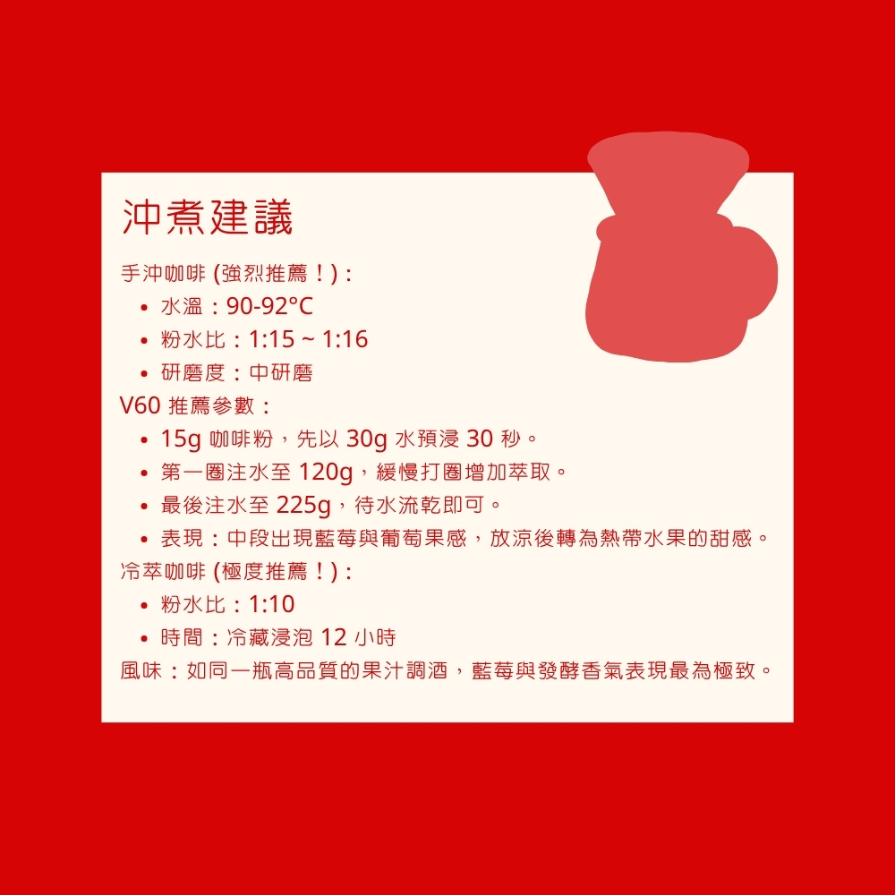 ▸ 粉 水 比 例:1:15 (15g咖啡粉,總水量約225g)。