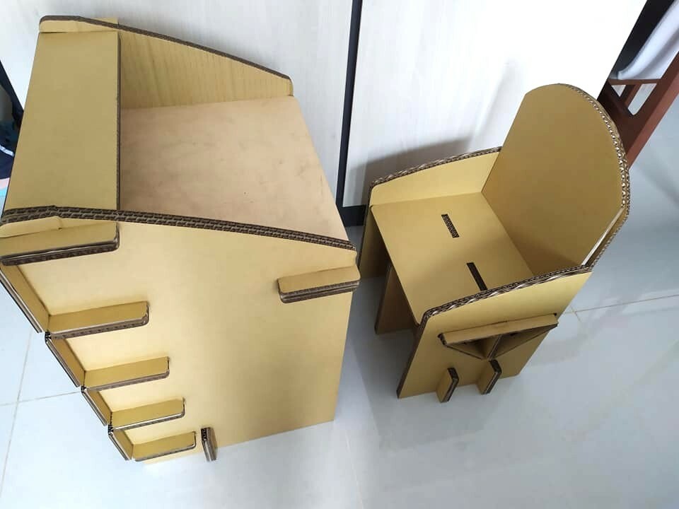 我是一位熱愛DIY的結構設計師,為了朋友的小孩上幼稚園,開始進入學習階段,於是我展開了一個有趣的創作計劃。 由於經常使用網路購物所以家中一直都有許多的紙箱,這次我決定利用家裡的廢棄紙箱,把它們變成一套可愛的書桌椅,讓小朋友有一個溫馨舒適的學習環境。 首先,我找來了一些大型的紙箱,打造出書桌和椅子的基本結構,並且透過補強與利用紙板本身的方向性,增加桌椅的承重力。 最後我還在書桌上留了一個小空間,讓小朋友可以收納筆記本和文具。 完成後,這套書桌椅看起來簡潔又可愛,充滿了童趣。我將它送給了朋友的小孩,看著他開心地坐在上面,把他的玩具擺放在桌面上,我感到非常滿足和幸福。 後來朋友將照片PO上網,得到了許多的迴響。