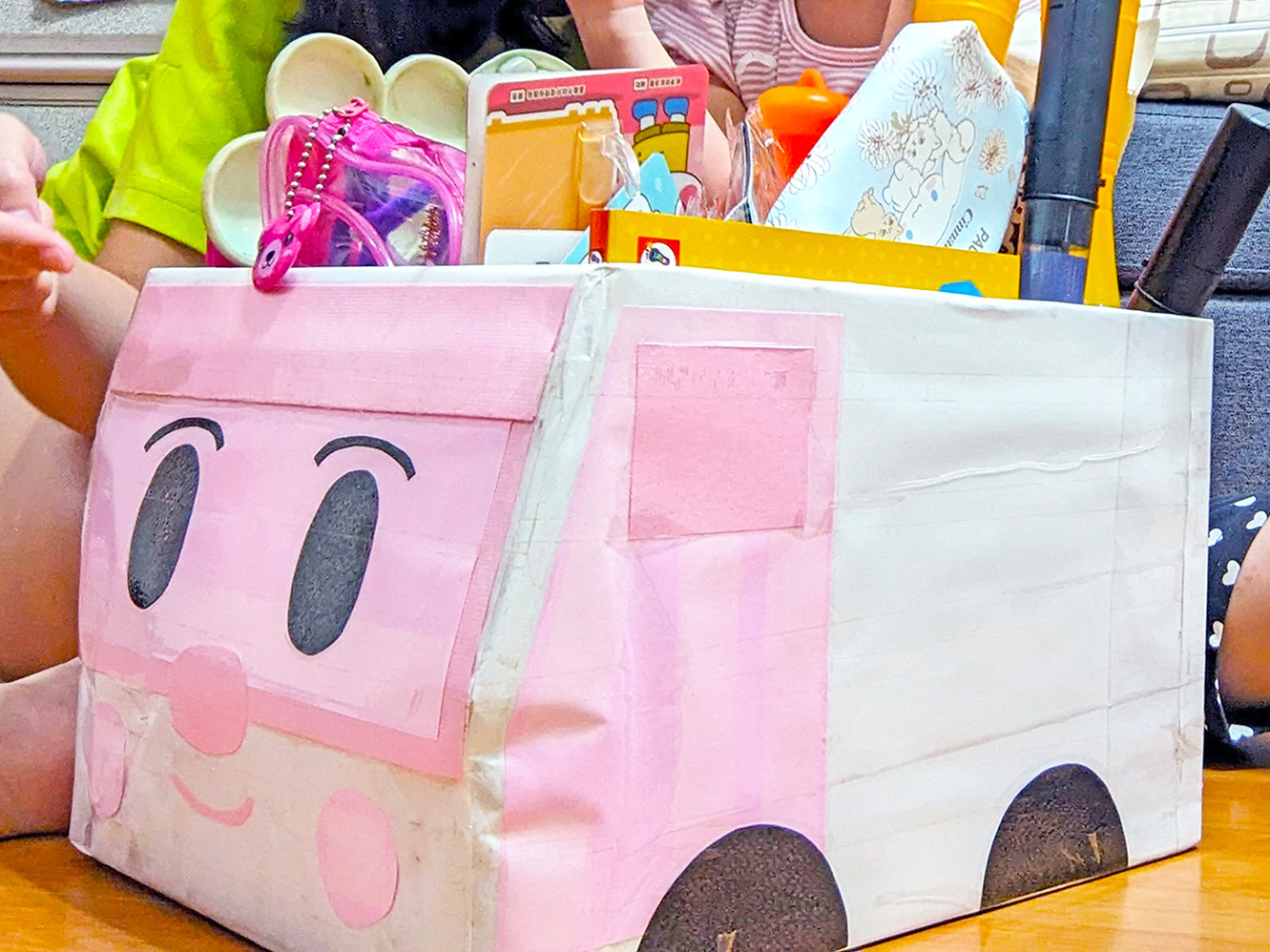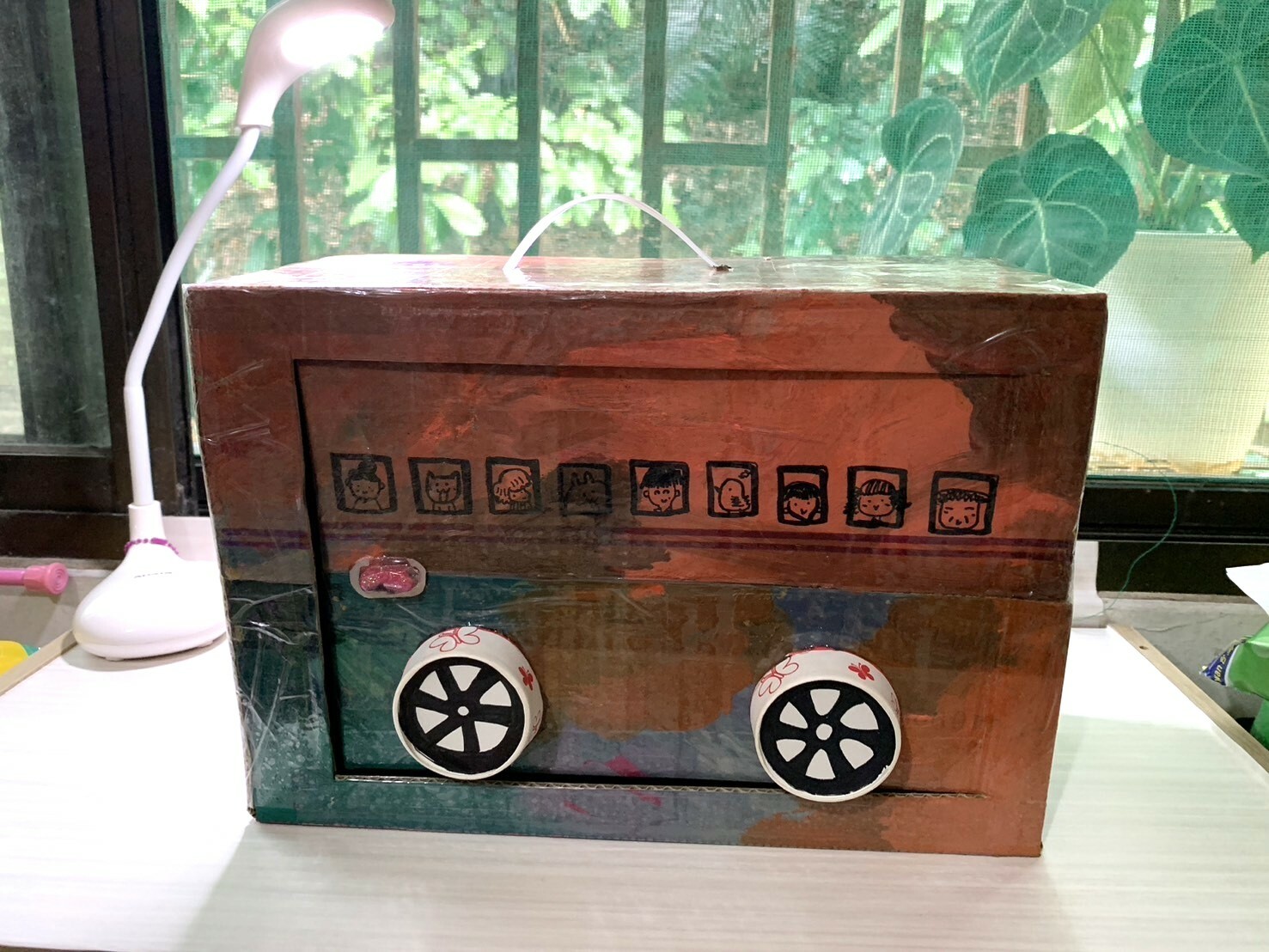 過年孩子們最期待的活動就是戳戳樂,但是戳完的紙箱要拆解很不方便,也想不到其他用途;另一方面兒子很喜歡蒐集小車子,剛好缺了一個擺放車子小空間。於是我們想到了可以利用這些紙箱製作一個車子形狀的車庫,上面還可以加裝一個小把手。塗色的過程兒子玩的非常開心,用了好多不同的顏色來裝飾他的車庫,完成後兒子迫不及待把小車子都擺放進去,高興的提著我們一起努力完成的寶貝車車庫。