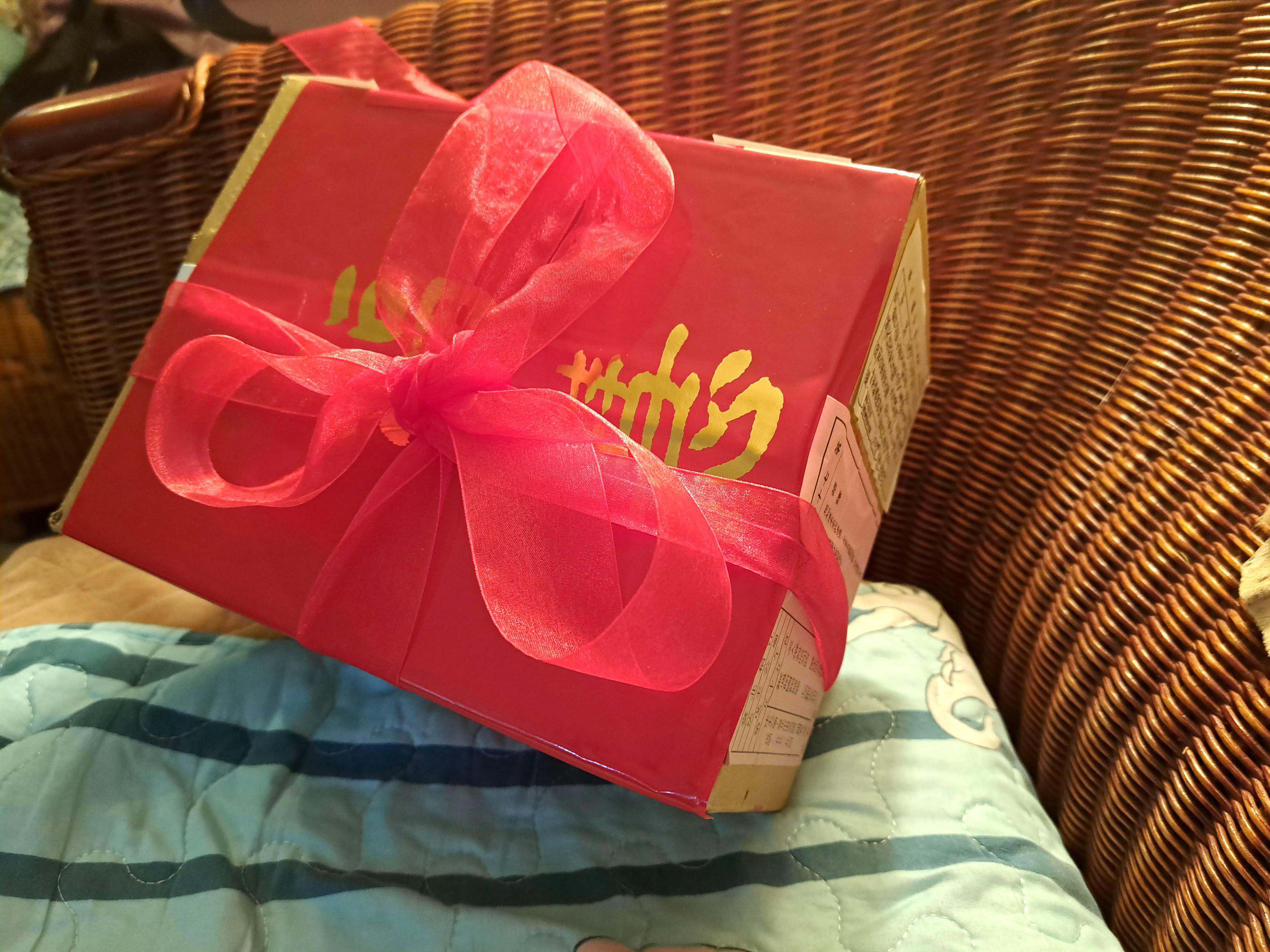 利用過期的春聯與去廟裡抽籤的籤詩,剪裁黏貼於紙箱上,完成一包裝喜氣洋洋的禮盒 籤詩是長期收集累積下來的,是神明的忠告與祝福。