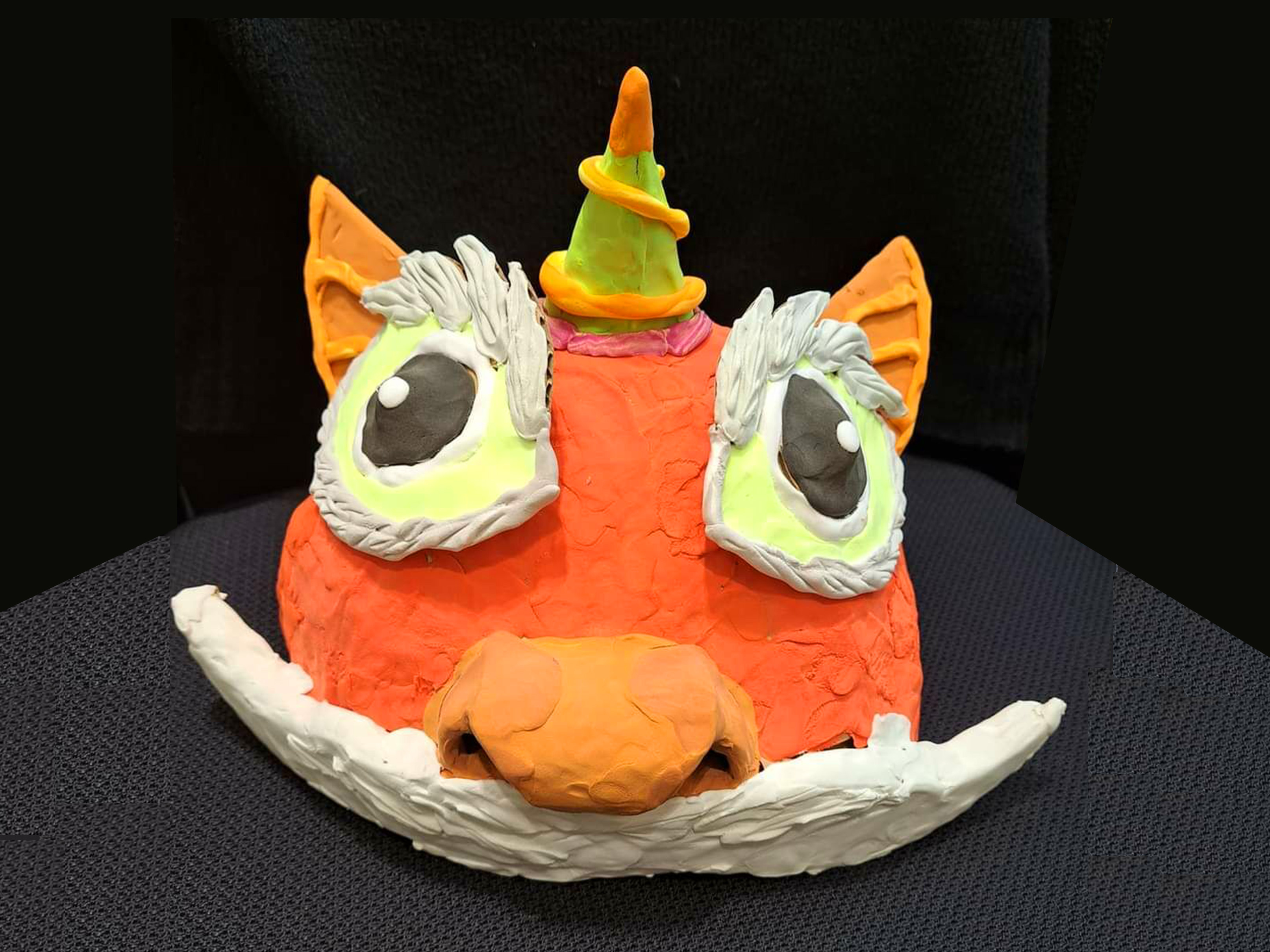 小侄子喜歡看廟會的舞龍舞龍,利用廢紙箱做了虎、獅給小朋友玩。 由於女兒美術課的黏土剩很多,所以利用黏土上色。