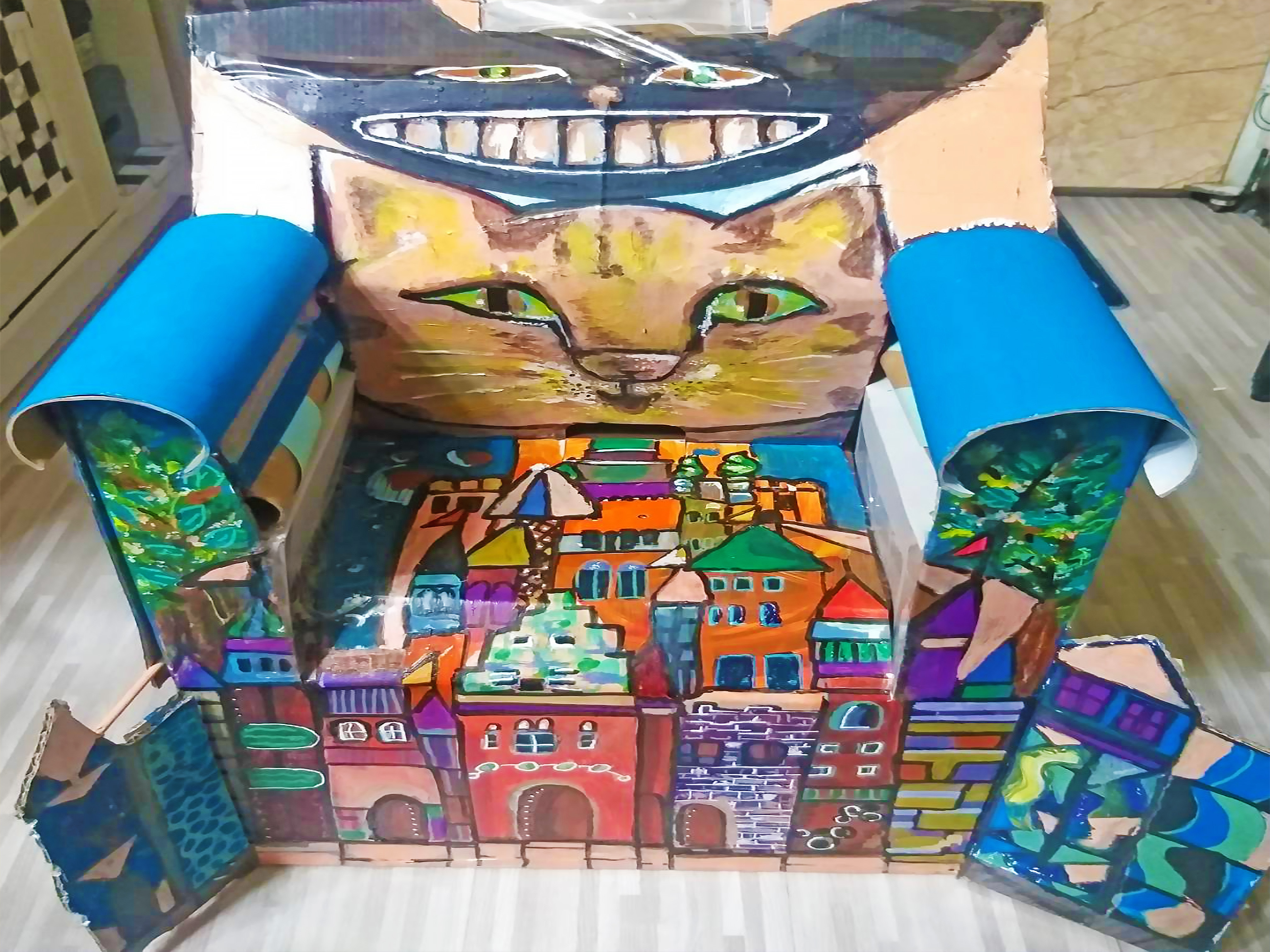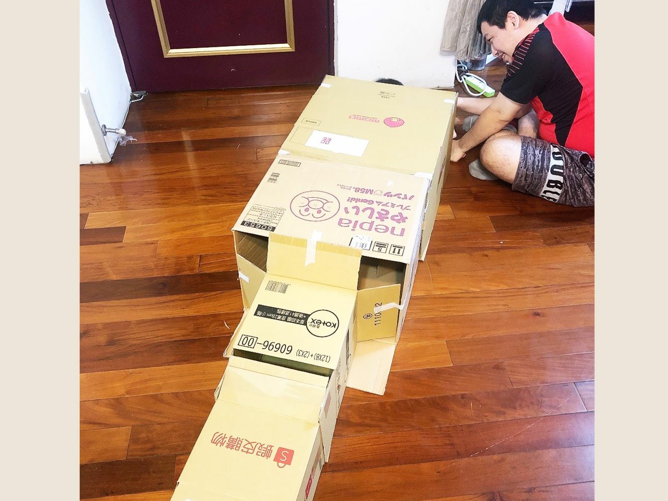 紙箱吸引人的就是溫度,不管是坐著或是躺著,第一個感覺不會是冷冰冰的,我利用裝家具的廢棄紙箱製作一個人見人愛的躺椅,我本身就很喜歡為孩子用紙箱創造某些玩具或是物件,但是講到實用性應該只有這個,我很喜歡研究各種東西做成紙箱的樣子,所以只要有適合的紙箱,要創造出物件應該都不會太難。只是設計時要花很多心思,不過紙箱的優點就是有彈性,容錯率大,還有免費。