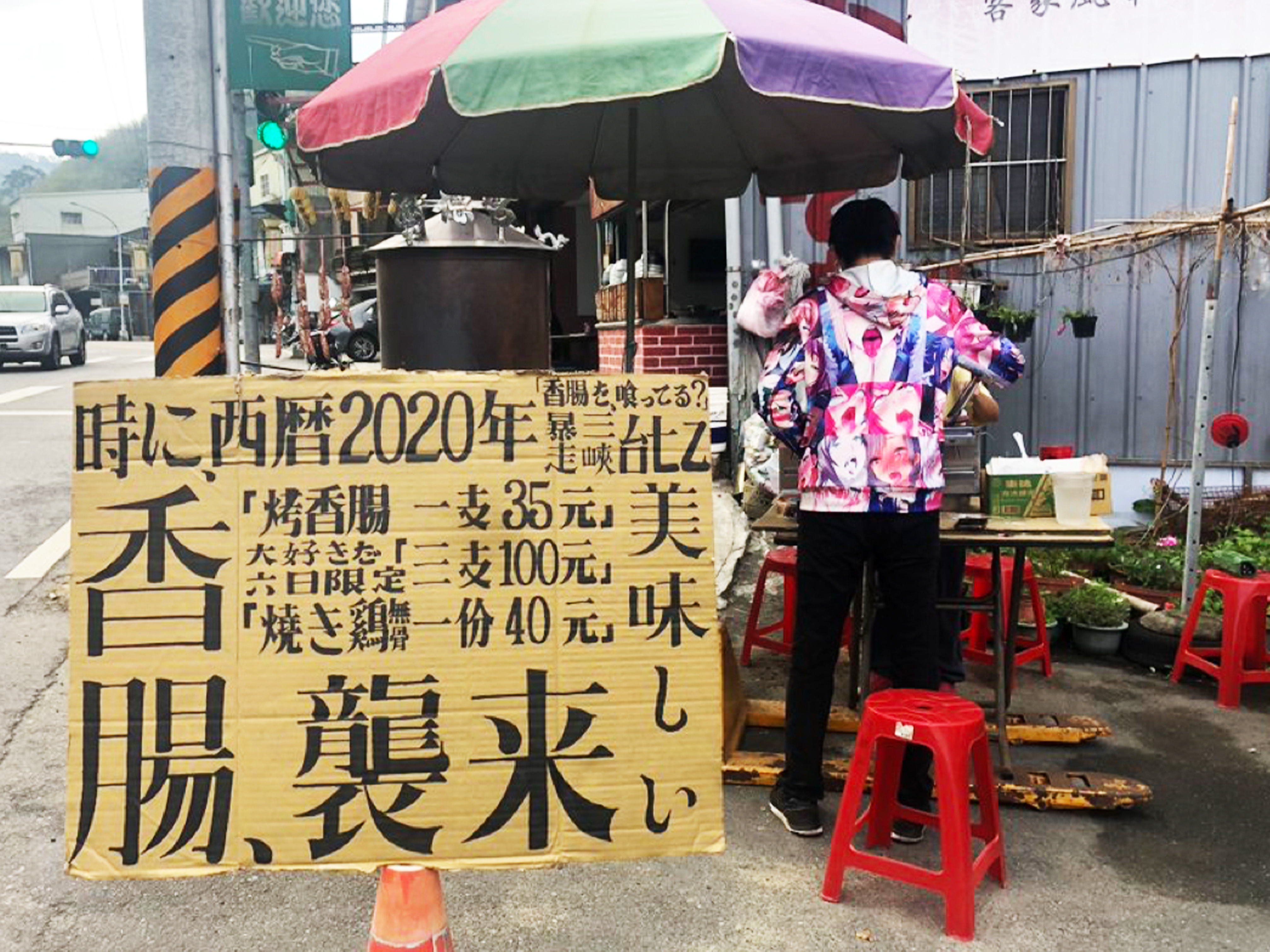 使用知名動漫EVA的排版梗,再加上手寫明體字,將一般的看板成為有趣的廣告,意外的成為了當時網路爆紅的迷因圖。 在2020年時,朋友叫我幫香腸攤老闆寫看板價目表,請他們拿來瓦楞紙板跟麥克筆要開寫,但我覺得一般價目表內容太無聊了,所以加了一些排版的梗進去,加上在高中時有考過廣告設計丙檢,所以會手寫字,而且考完後沈寂十幾年、再也沒使用過的技能該拿出來使用了吧⋯⋯沒想到另一位網紅朋友拍完照傳到推特上,卻意外的被轉傳到FB上而爆紅⋯⋯