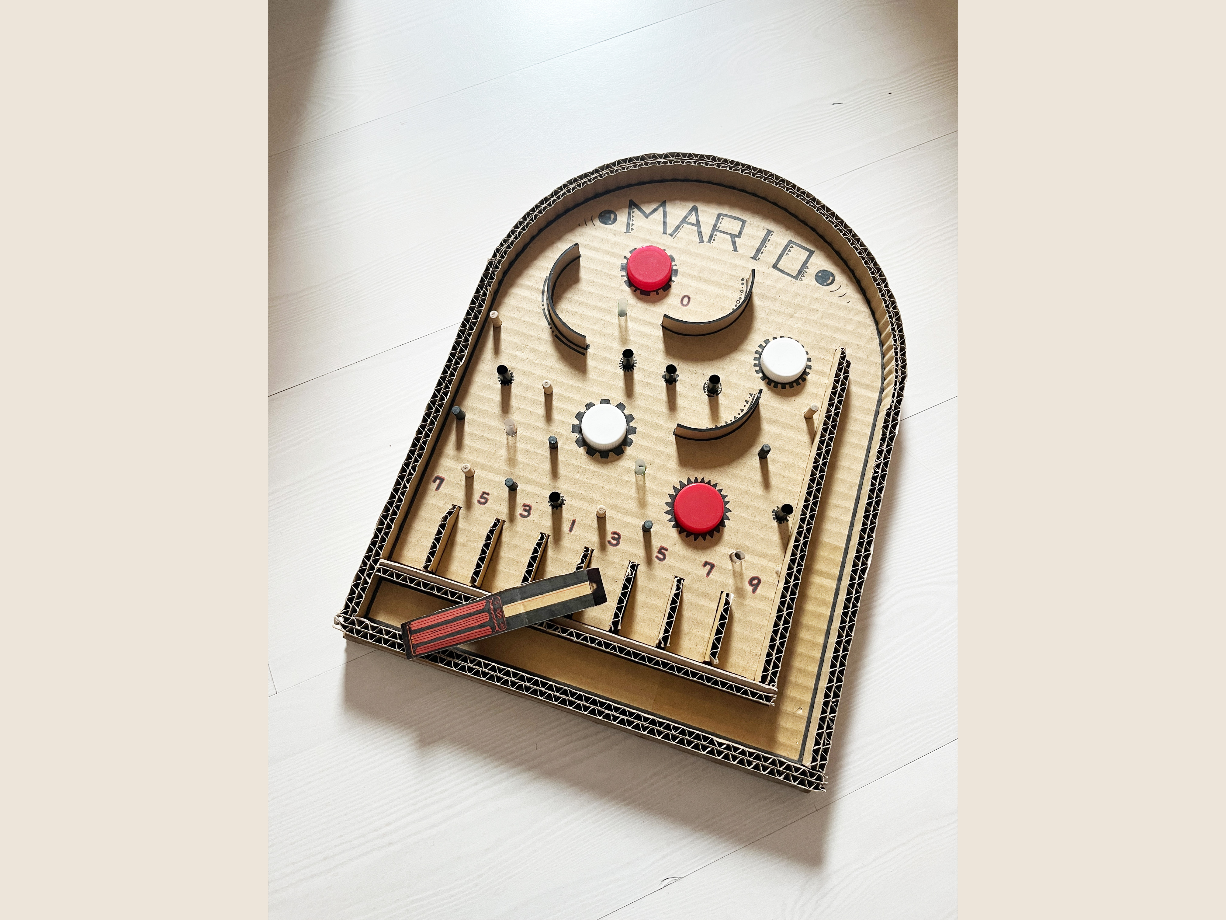 以前就很喜歡自己動手創作,因為有了小孩,更喜歡了。 當小孩兩歲多時,很喜歡去外面玩彈珠台,我就想說,不如回家用紙箱做吧! 從確定尺寸、裁切、選其他材料…都是邊做邊想,心裡只有一個目的,就是看到孩子的笑容! 材料除了紙箱之外,還有牙籤、吸管,蓋在上面做保護用的塑膠模。整體完成之後,小孩看到這個彈珠台,真的超級開心,我熬的夜也值得了!