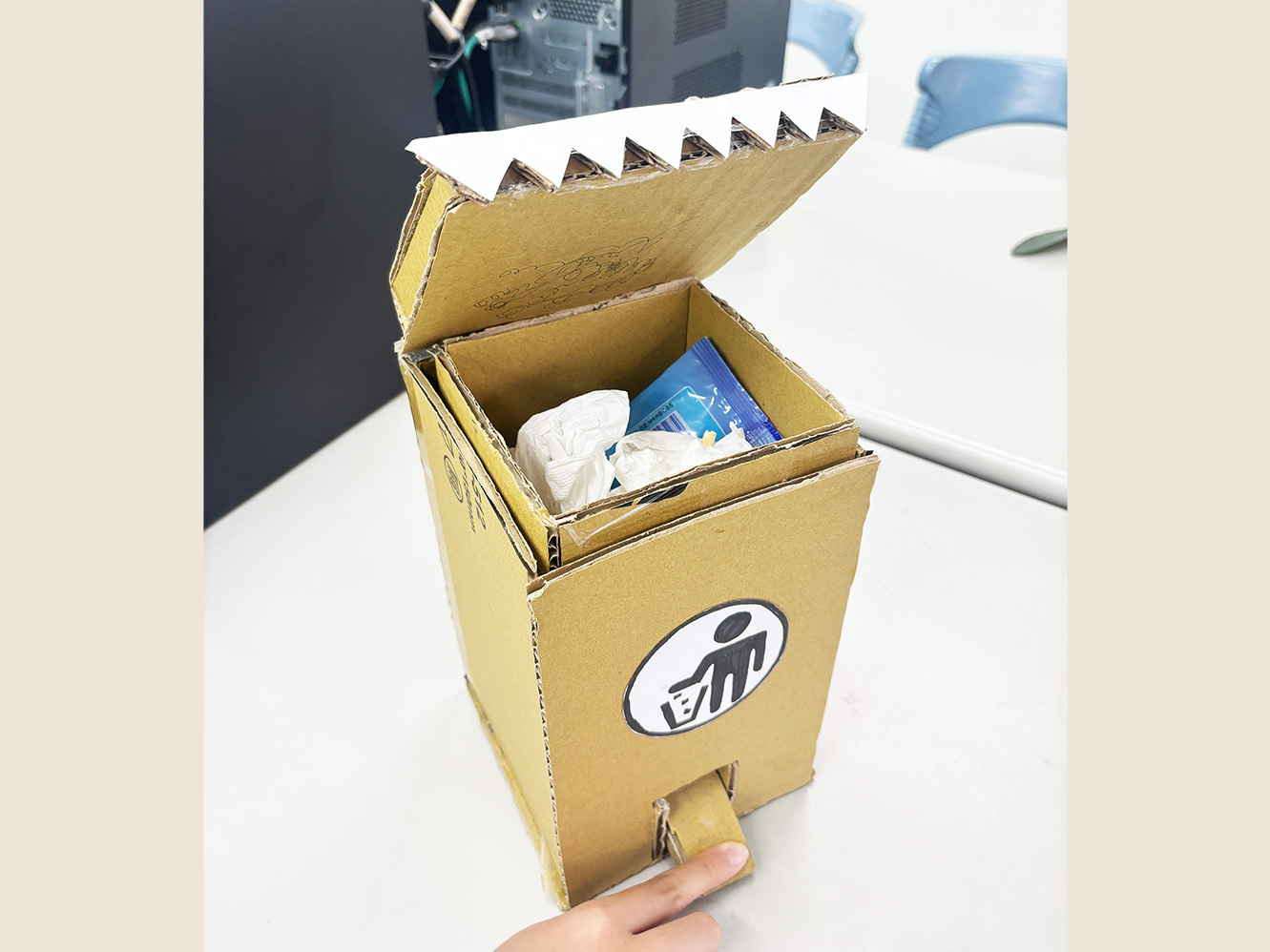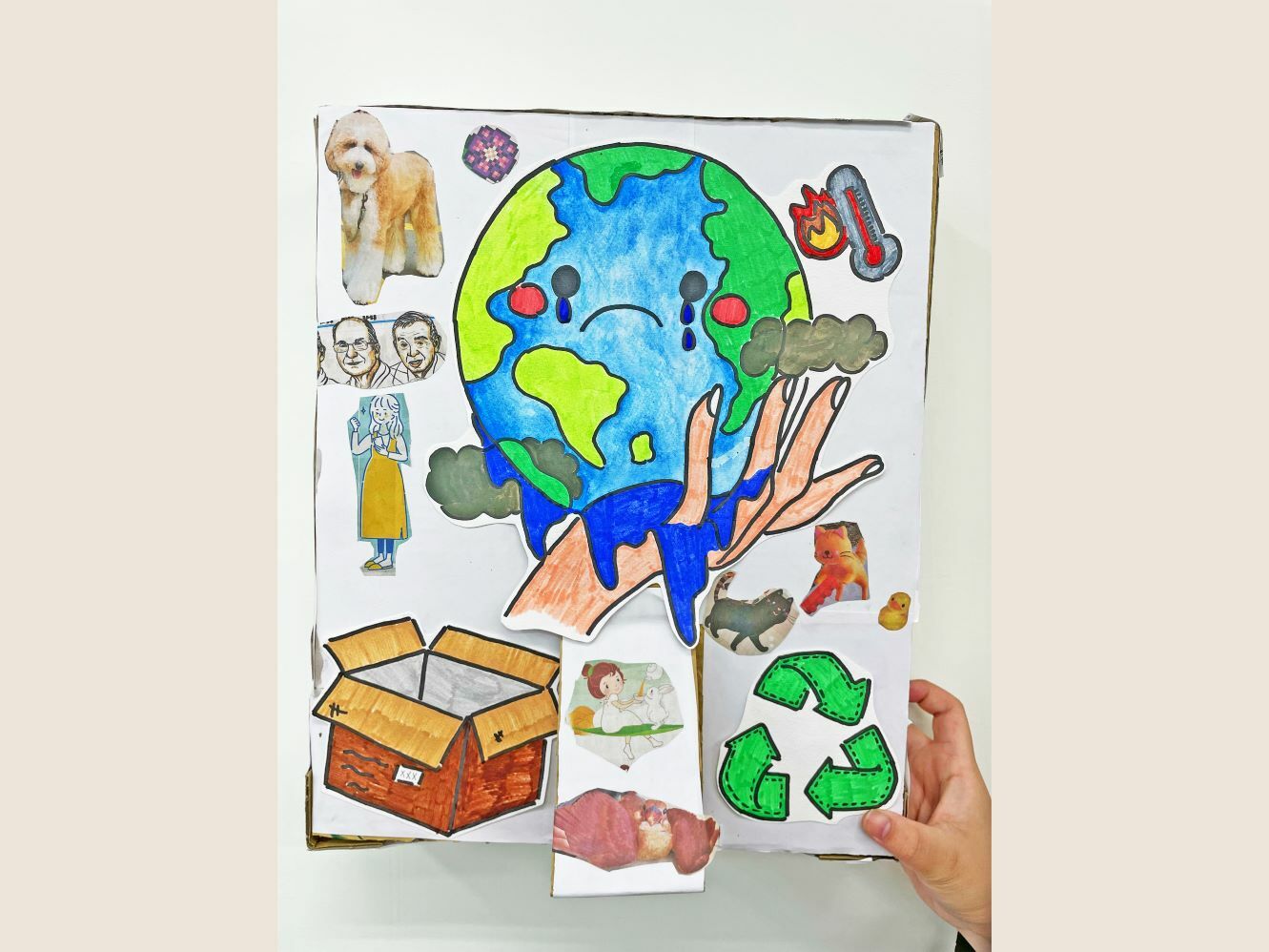 2.創作緣由:在課堂上,無法隨意離開座位處理垃圾,促使我們決定制作垃圾桶,讓我們能夠在座位上也積極保護環境。