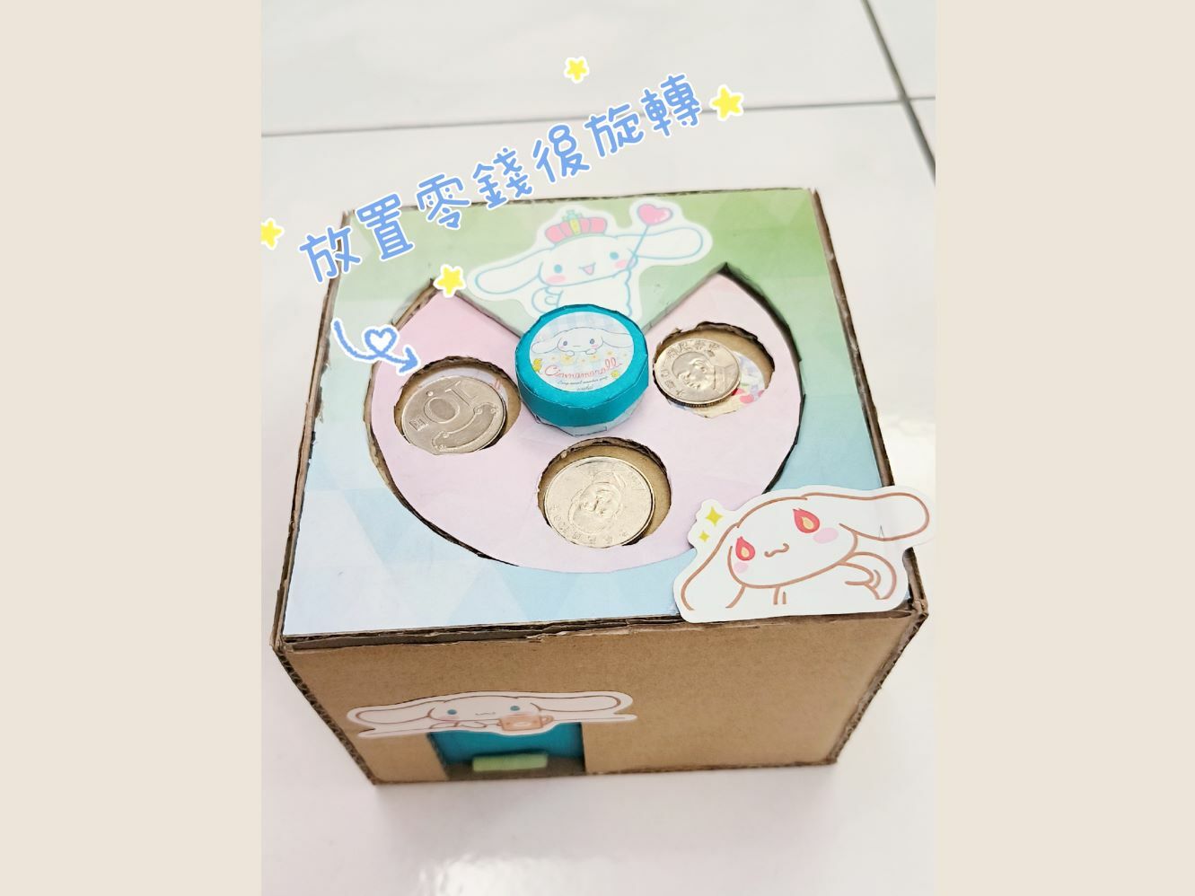 讓存錢變成有趣的事情~ 加點小機關,旋轉一下,一個硬幣就消失了! 提升孩子們存錢的慾望,現在她們很努力地賺零用錢要把存錢筒存滿呢!