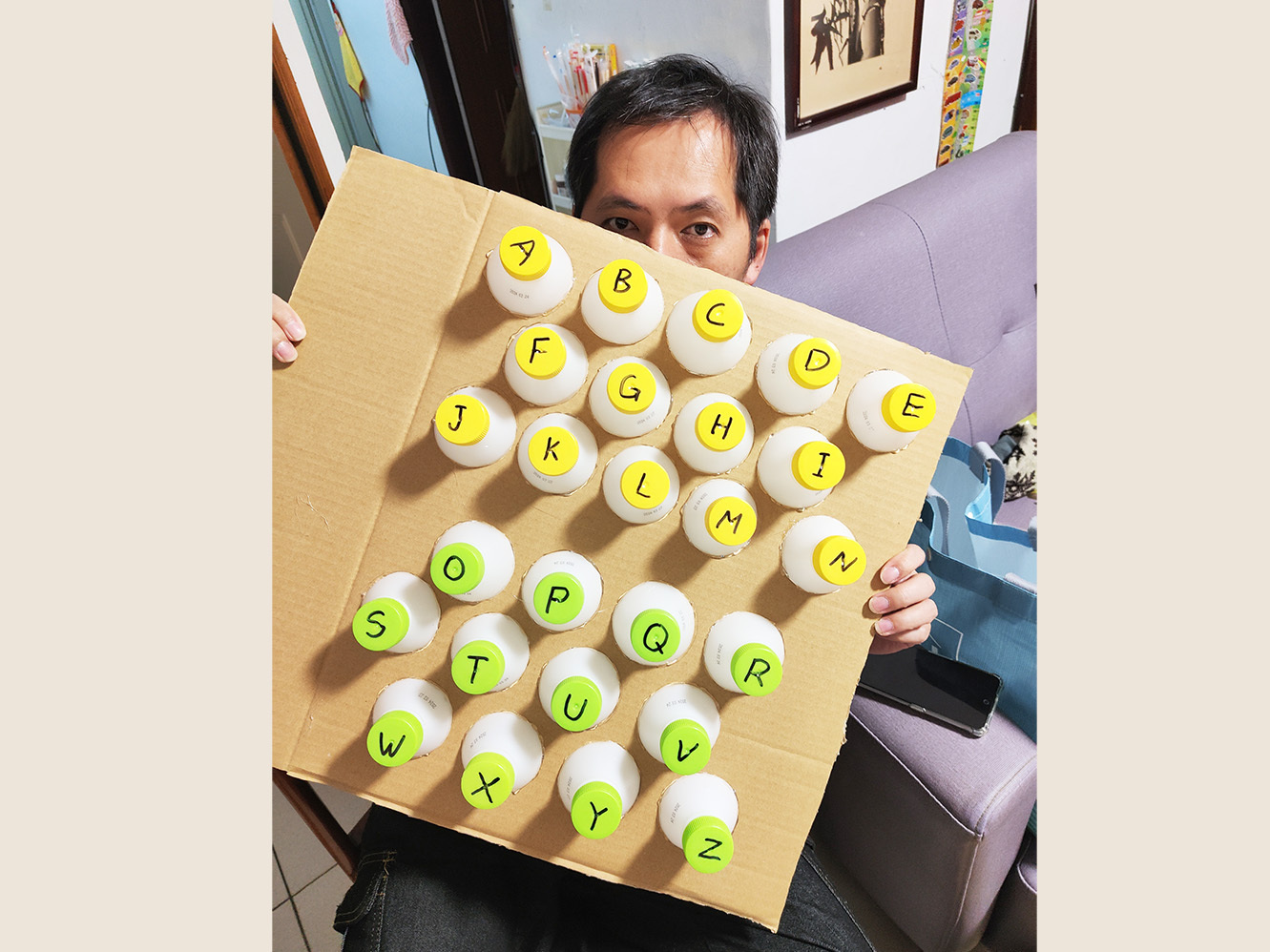 小孩剛學英文字母,區分大小寫很困難,26個要對應也教半天,我就想到做一個學習板給小孩玩,還能順便訓練小肌肉~
