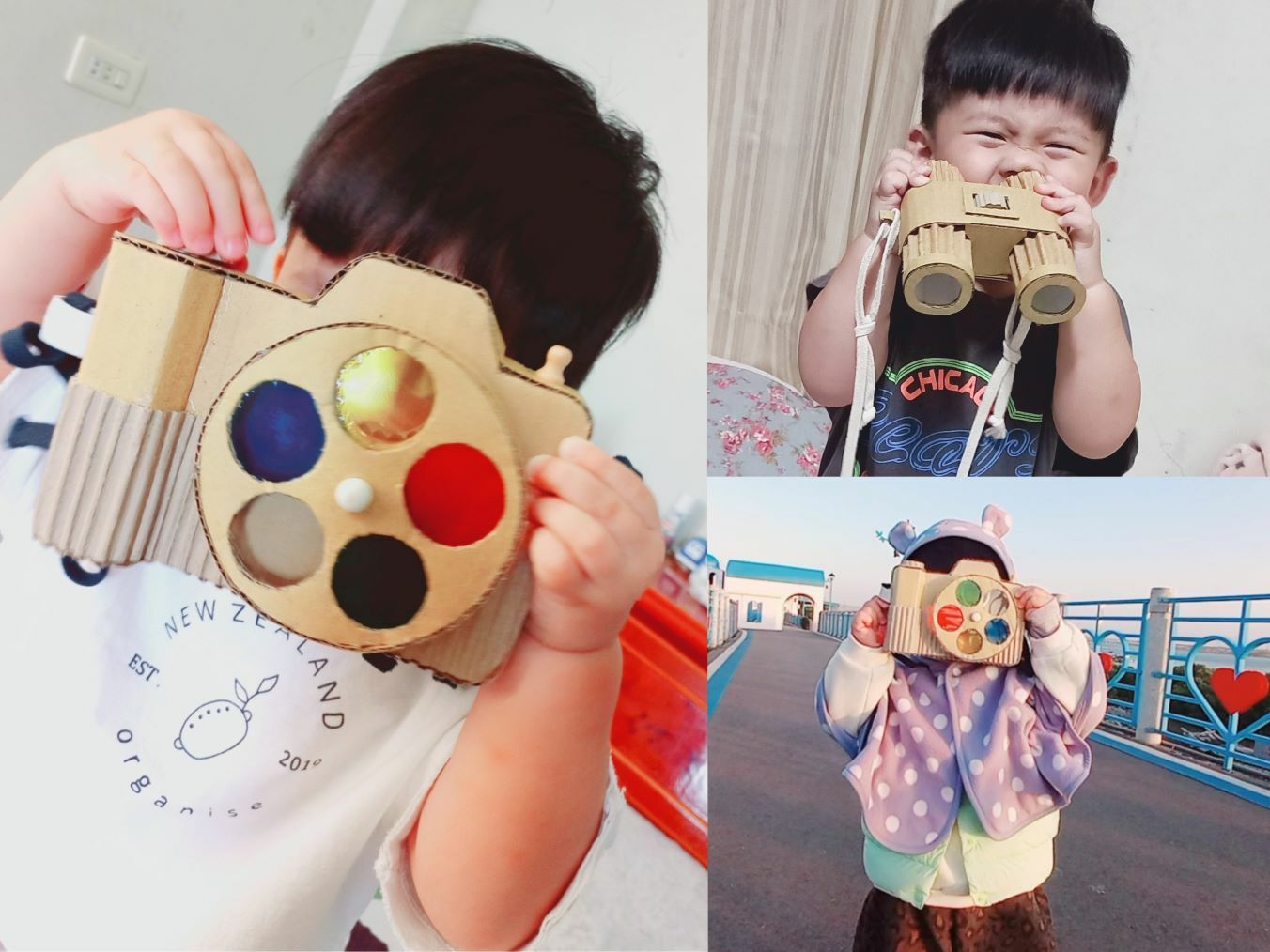 媽媽我,曾是一名幼保科的學生,也是一個很愛利用紙箱、寶特瓶……等各種材質的回收物品DIY手作教具給孩子玩,一直希望自己希望孩子能在玩具教具中找到更多學習的興趣,希望製作給孩子的教具不單單只是玩具,也能學習到更多知識,探索更多可能。 製作時間都是利用孩子休息時間完成。 製作過光影相機、望遠鏡、聖誕節壁爐、扭蛋機以及玩中學的教具,最多使用的回收物品就是紙箱。