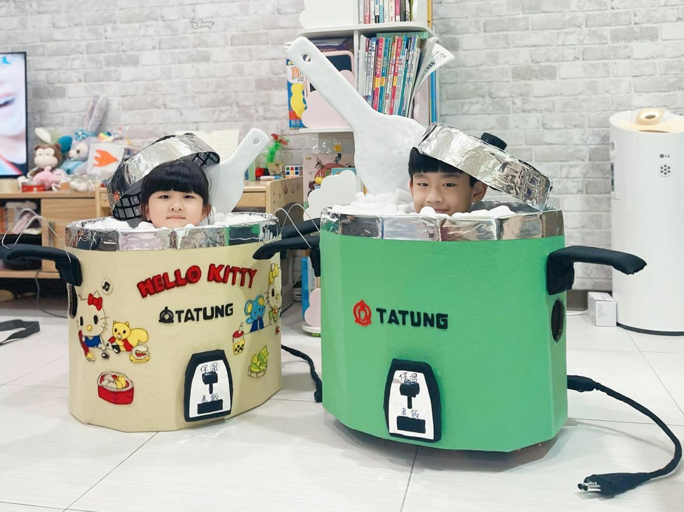 一起回收再利用!讓紙箱不僅僅只是個平凡的東西,跟孩子一起動動手也能賦予它不一樣的生命!過程中孩子一起幫忙、學習,努力完成後的成就感更是無價的。配合萬聖節活動,不想花錢買只穿一次的衣服,所以運用紙箱、不織布來做出每人家中幾乎都有的大同電鍋,讓家電用品走上街頭,成品出來對孩子來說非常新奇好玩、對老一輩的奶奶們來說更是非常熟悉,回憶感湧現!