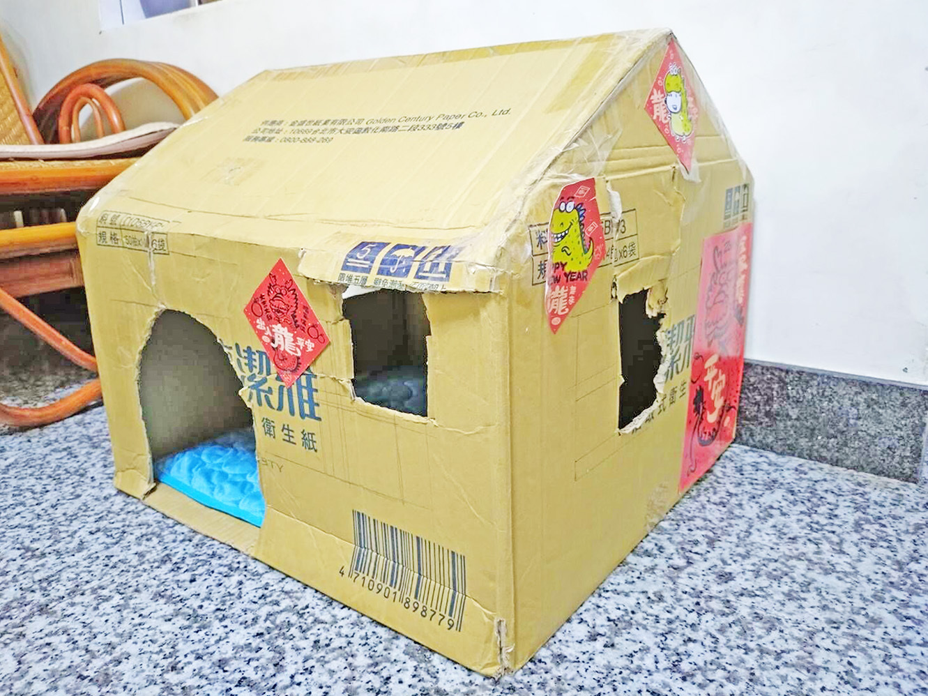 2023那年的04月份,我們收養的一隻貓咪名叫仔仔,是個聰明頑皮的小男孩,起初買了組合式貓籠給他睡覺用,但他越來越大隻都快塞不下了,也越來越少進去組合式貓籠,後來認真研究發現其實貓咪很重隱私且喜歡紙箱,家裡本來就都會買整箱的衛生紙,剛好有大紙箱可以來做貓屋,沒想到仔仔也意外的很喜歡,常常會在裡面睡到翻肚,但他很愛不按牌理出牌,會從窗戶的地方進出,而且調皮的時候會咬紙箱,所以照片中的門窗有的都破破爛爛的;今天的過年有看到0.5mm插畫家在臉書上有提供可以免費下載列印的春聯,剛好讓仔仔溫暖的家貼個春聯也討個喜氣洋洋,迎接未來的每一個新年。
