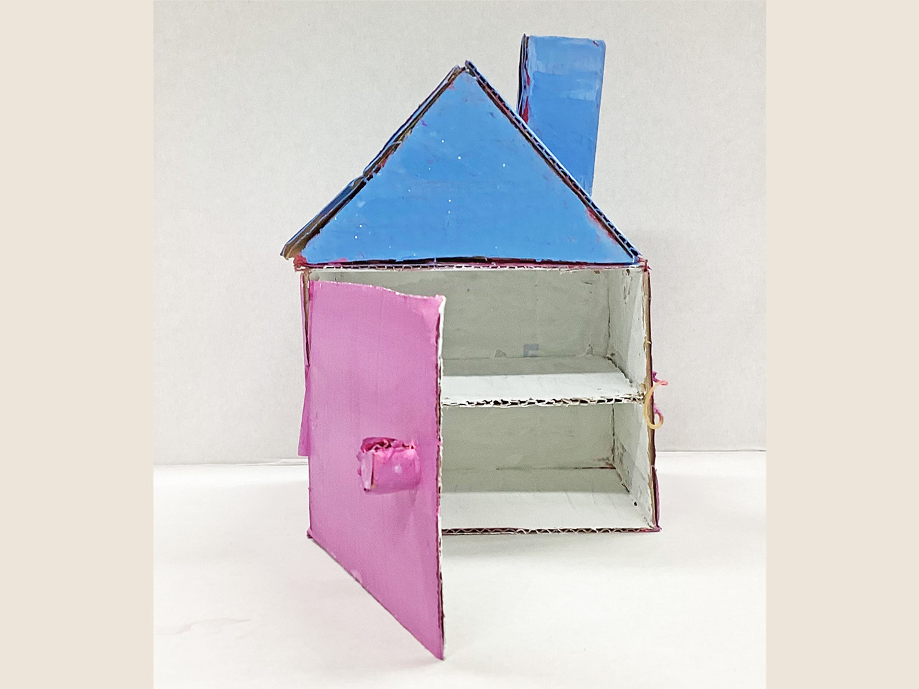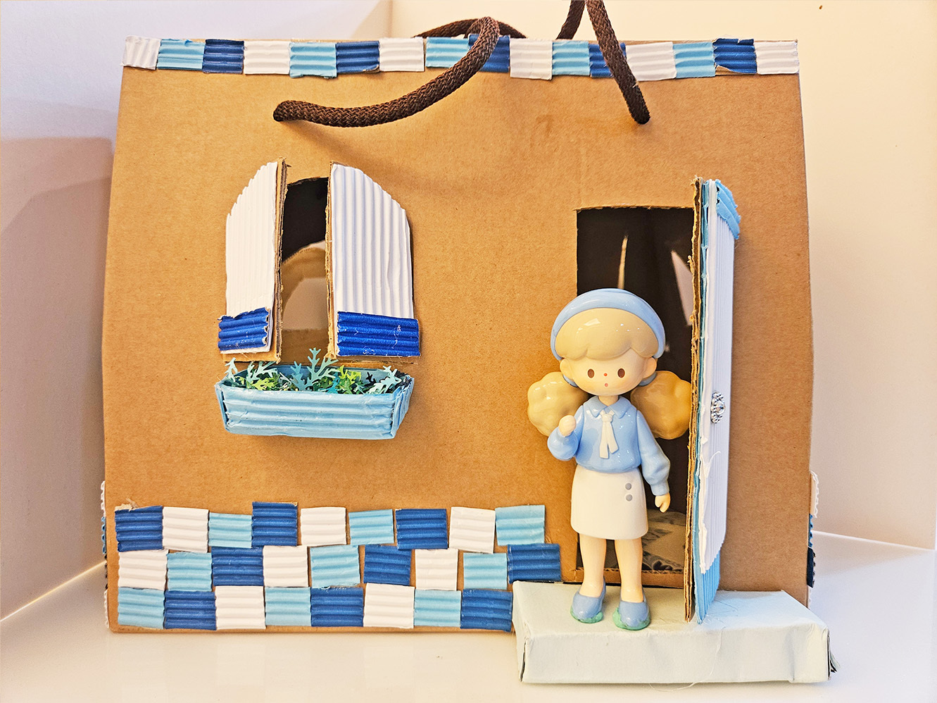 創作理念我收集了可環保回收的紙張,採用了瓦楞紙,咖啡杯套,樹枝和顏料蓋子,做成可收集娃娃屋的手提箱。
