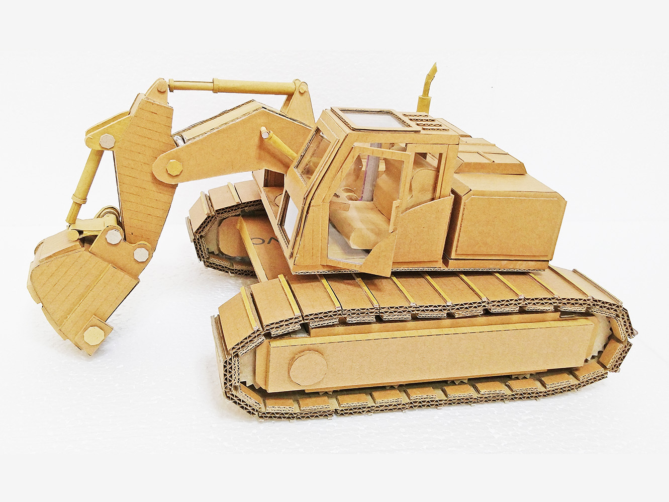我非常喜歡工程車,假日時會自己帶著相機,騎上腳踏車去追工程車。作品主要製作吊車,並且從4年前國中就開始製作了,開始製作的原因來自吊車模型,但模型實在太貴,至少都要一萬,也就是因為買不起,我才決定自己製作,沒想到一台接著一台,越做越多。而我採用的材料都是回收物,例如:學校學期開始裝書的紙箱,回收桶撿來的竹筷.吸管,甚至在地上撿到的小東西也都被我利用,作品完成以後,我便帶著我的作品與實車合照(上傳照片圖4),員工們非常歡迎我,也特別為我把吊車開出來車庫。 四年來技術與顏色的追求也隨之提升,當我完成新的結構時,成就感十足,也因為手工是獨一無二的,也成功讓我在臉書上得到小名氣。