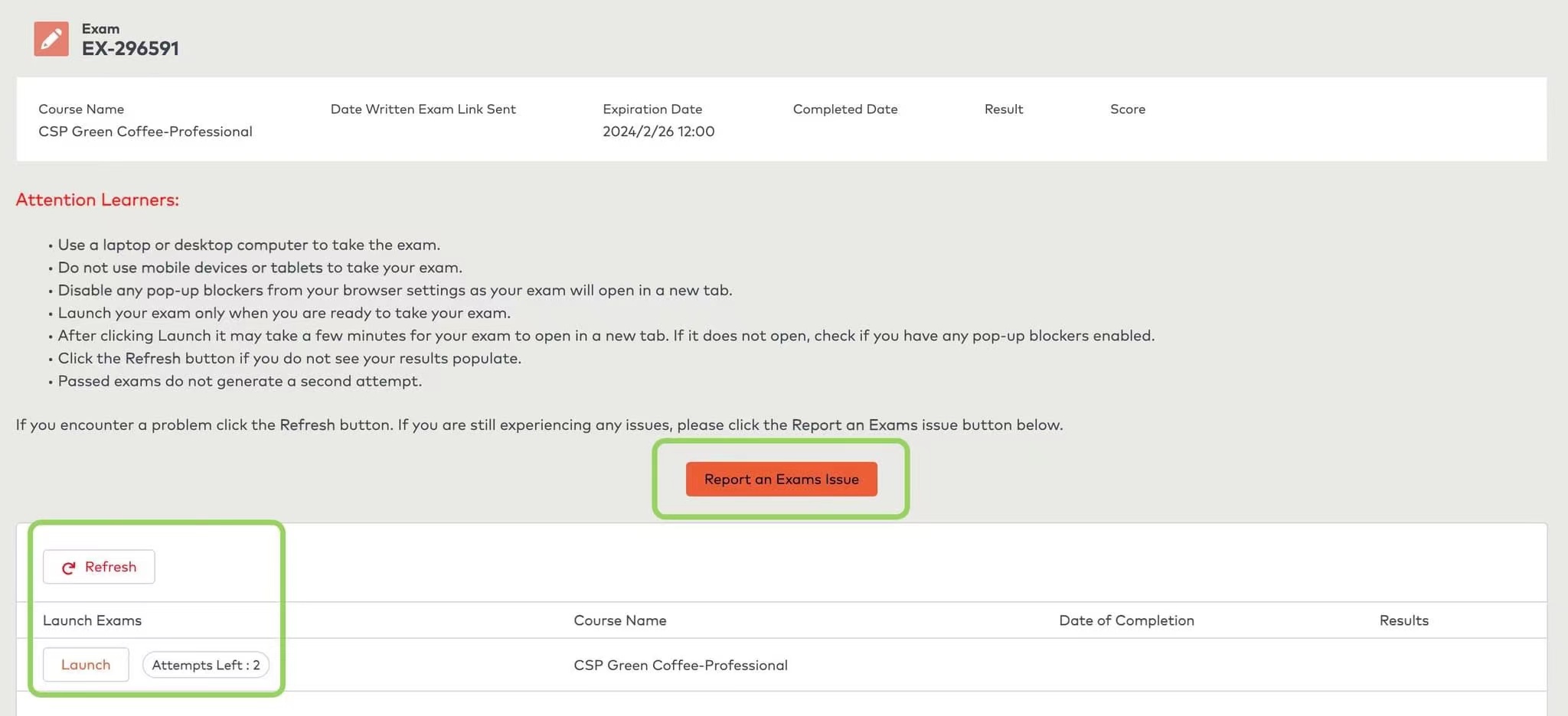 此外,如果考試頁面的加載速度不如預期,學員可能會決定離開或關閉該考試分頁。在這種情況下,點選刷新按鈕也可以有效且迅速的重置考試連結。