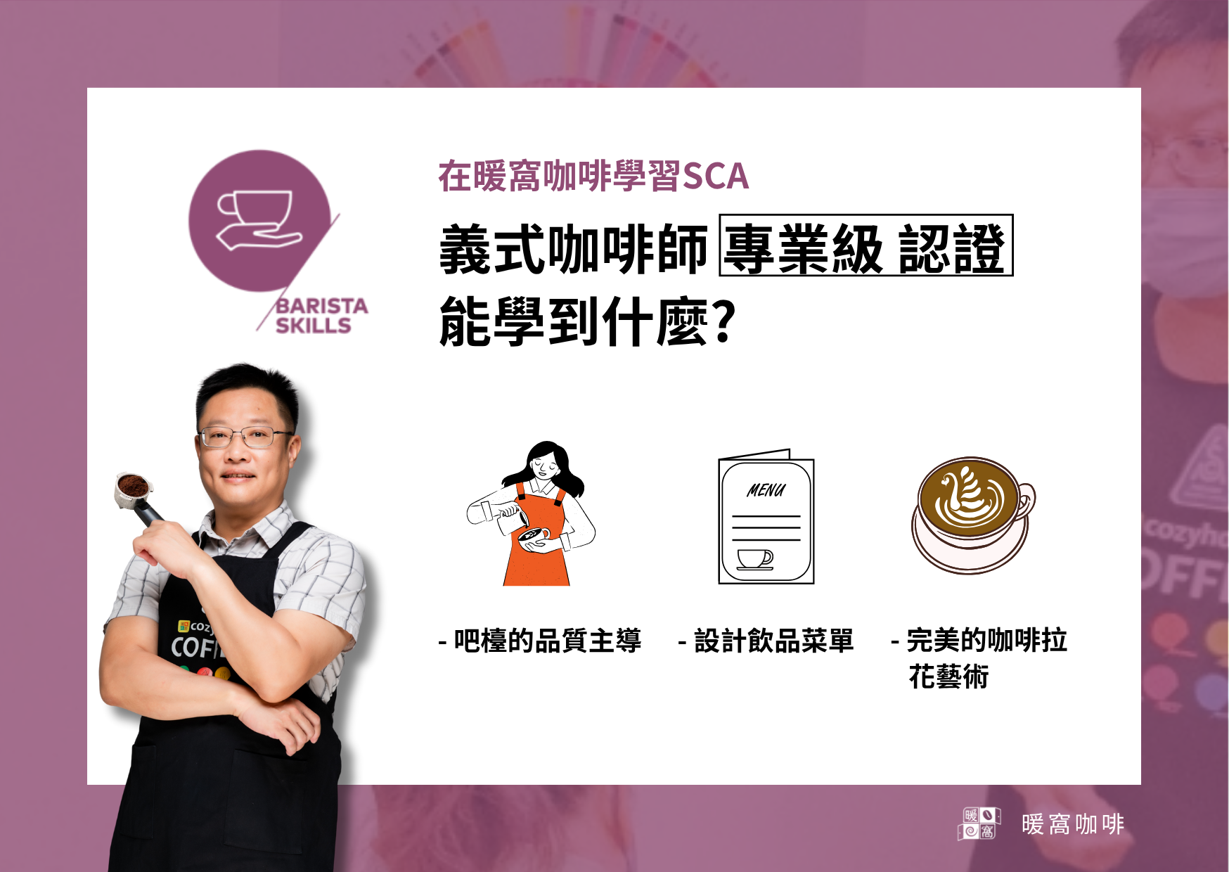 最後工作管理、客戶服務以及到財物規劃管理。廣泛的內容,讓您更能成為全方面的咖啡師。