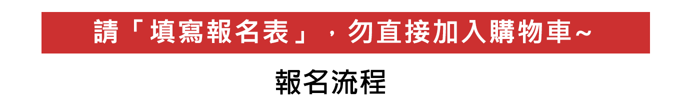 報名方式:無法官網加入購物車結帳,請務必『先填寫報名表』報名表內可選擇時間