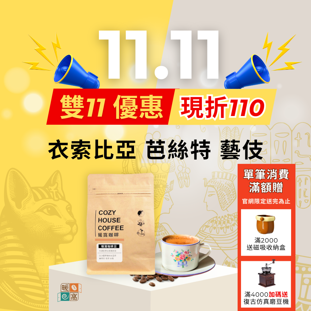 至2025-11-14T16:00:00.000+00:00截止 全店,雙11滿額贈:4000元加碼送手搖磨豆機