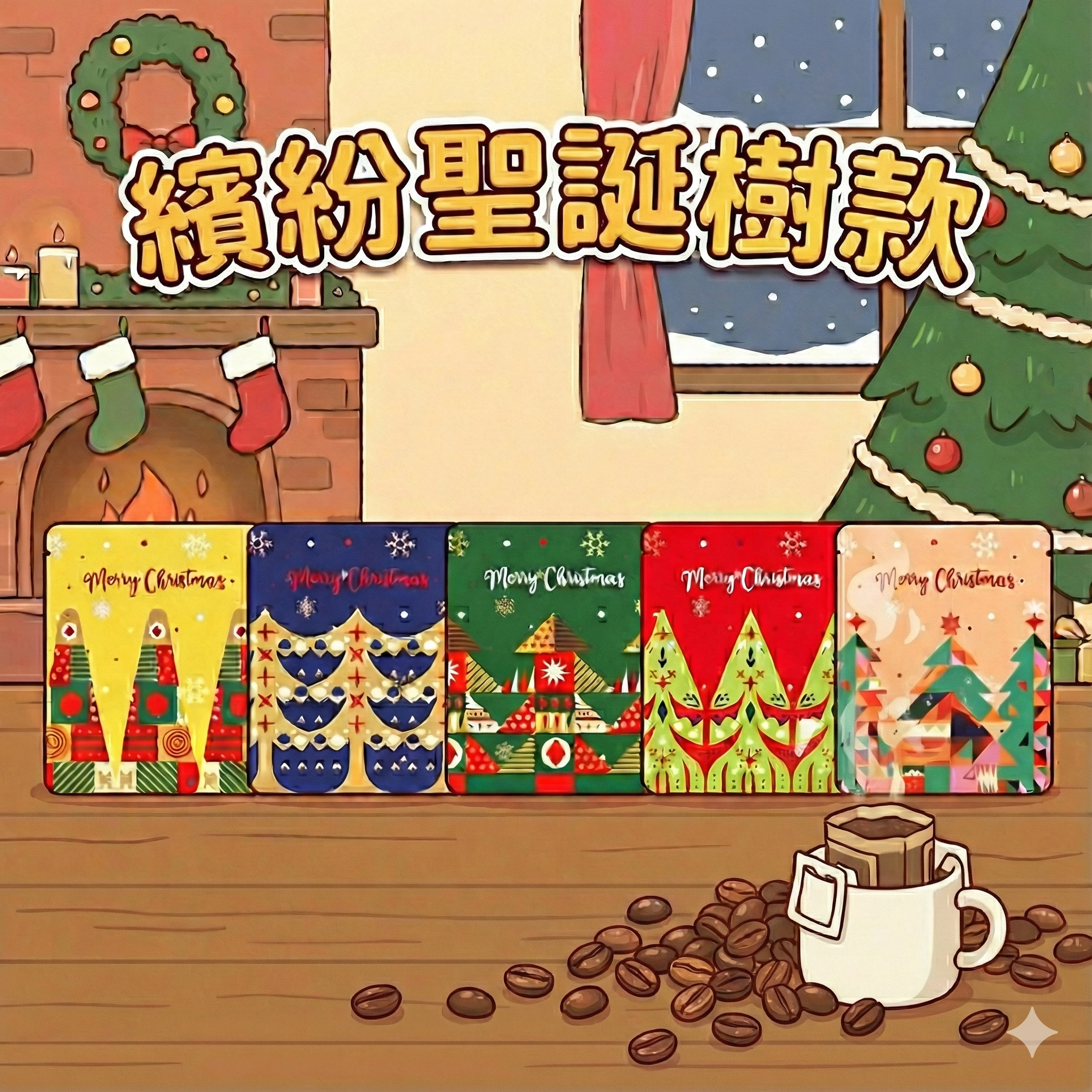 用大膽的幾何色塊與普普風設計,拼貼出最潮的聖誕視覺!紅、藍、綠、黃的鮮豔撞色,充滿了活力與現代感,就像是一場熱鬧的耶誕派對直接在包裝上開演。這款最適合送給喜歡設計感、個性鮮明的朋友。在眾多傳統包裝的交換禮物中,它絕對是視覺最搶眼、一拿出來就讓全場驚艷的時尚單品,讓你的咖啡時光也充滿潮流味!