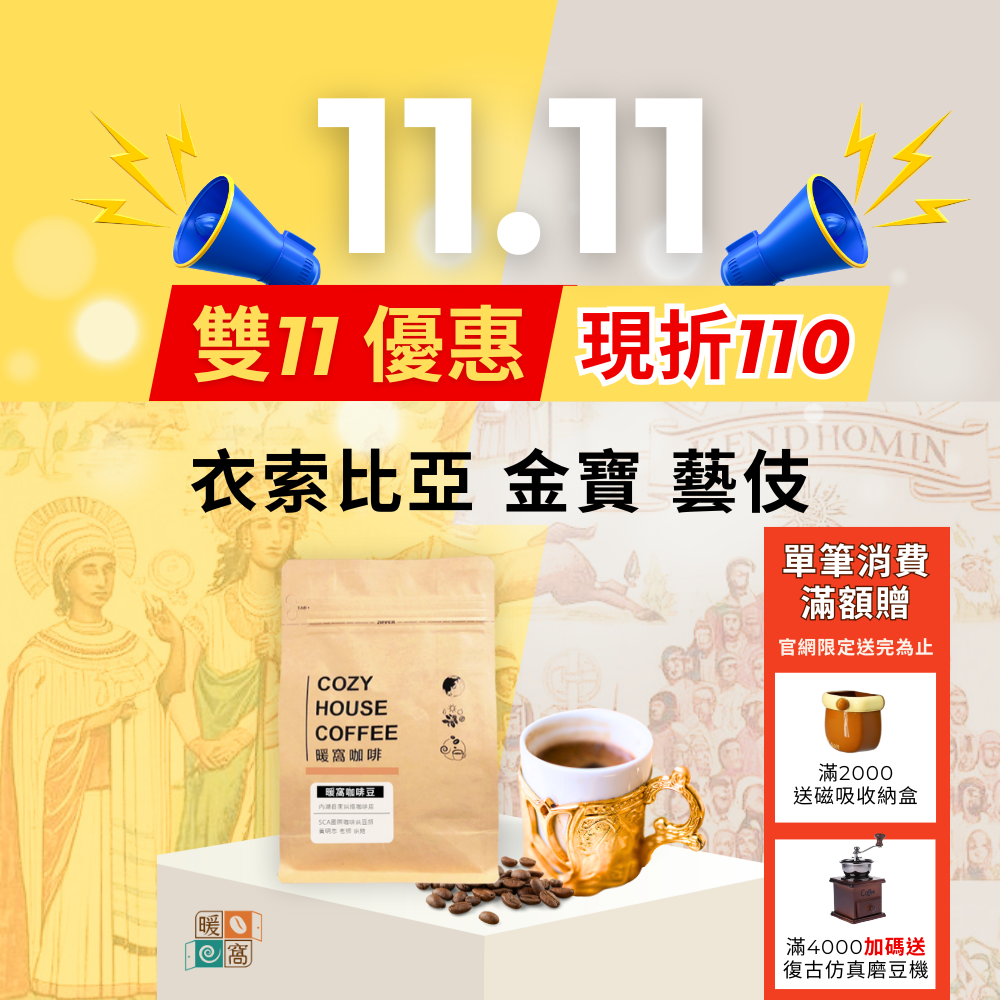 至2025-11-14T16:00:00.000+00:00截止 全店,雙11滿額贈:4000元加碼送手搖磨豆機