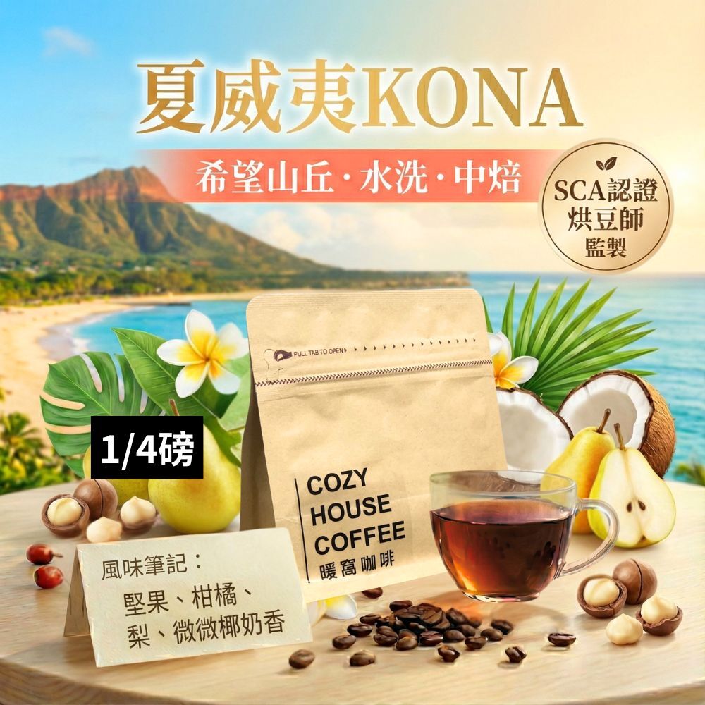 中 焙|夏威夷 可娜 KONA 希望山丘莊園 水洗處理法 咖啡豆 1/4磅(114g) 手沖咖啡|暖窩咖啡