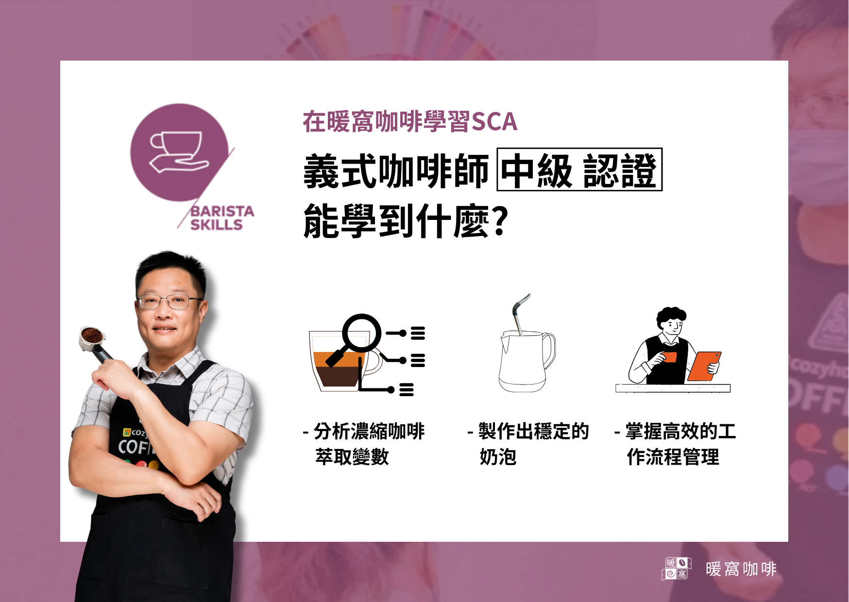 1.專業知識與技能建立: 能系統化地學習咖啡理論和實際操作技巧。